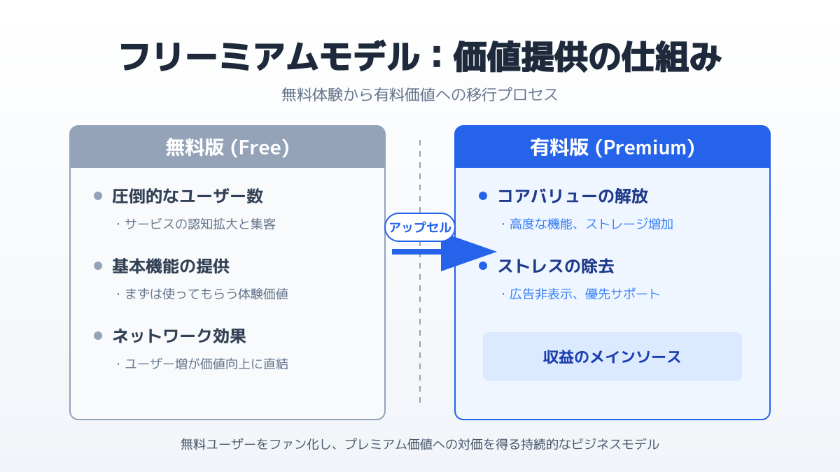 SaaSビジネスにおけるフリーミアム戦略は、単なる無料提供に終わらず、無料から有料プランへのスムーズな移行を促す緻密な設計にかかっています。