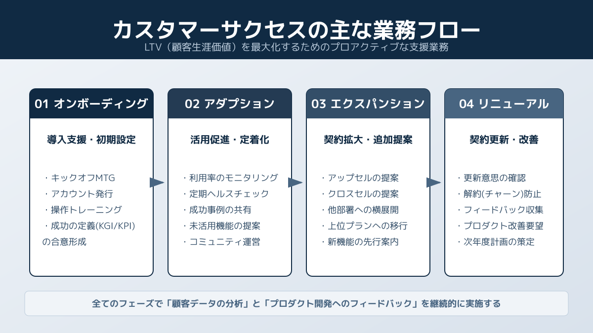 多くのカスタマーサクセスの本で強調されている通り、マネジメントの最大の目的は、業務の属人化を防ぎ、スケーラブルな支援体制を構築することです。最初から完璧な仕組みを目指すのではなく、現場のメンバーから定期的なフィードバックを集めながら、自社独自の運用ルールへと着実に落とし込んでいくアプローチを推奨します。