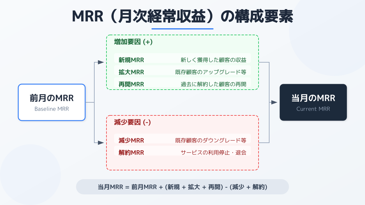 MRRの増減を正しく評価するためには、収益を以下の4つの要素に分解して追跡します。